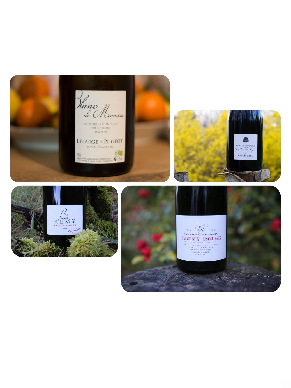 Even though champagnes couples perfectly with food, you might look as well for still wines to go with the meal. And the good thing is, the Champagne region offers a great diversity of them : red or white, single-plot, blend, old vintage, from Pinot Noirs or Meunier… here are some suggestions for successful food-pairings from starters to poultries along with platter of sea food, oysters and scallops even lobster for the white and bushmeat, morel and duck for the reds…
