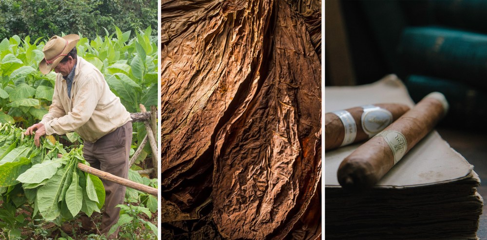 “First of all, there is the blend of the leaves of the filler, called tripa, which constitutes the cigar – it is made of three types of leaves, each with a very specific role. When you draw on a cigar, there is a leaf which slows down, one which regulates the combustion and the draw. This will give to the aromatic leaf the opportunity to develop the aromas according to the smoking. And this blend is a recipe that remains very secret : each House of cigars has its own recipes. Just like the cellar master blending the different vins clairs for champagnes, each producer, each estate has their very own blends.